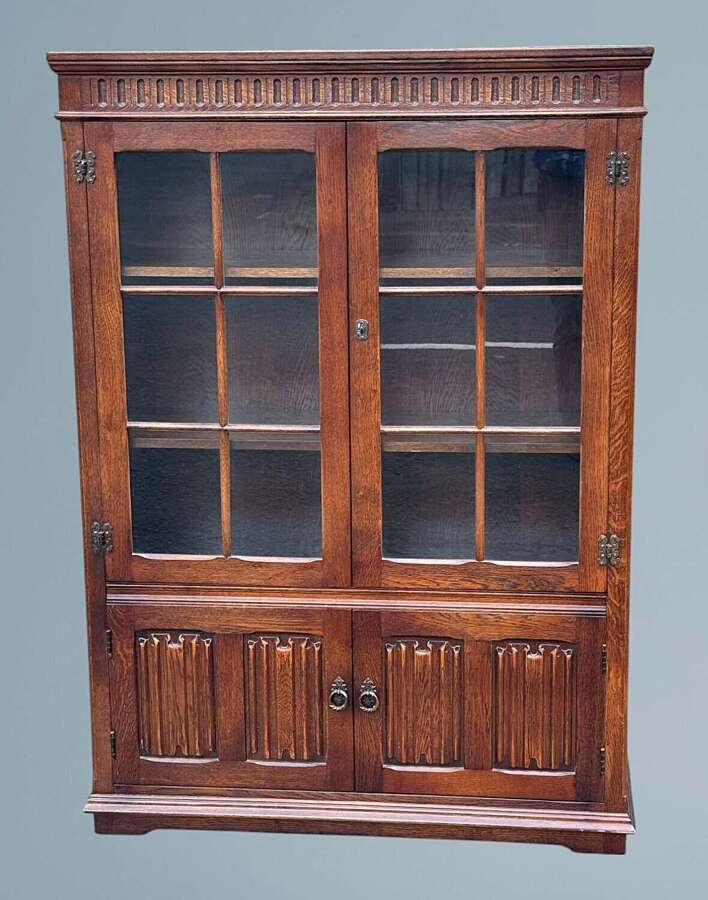 An Oak Two Door Linen Fold Bookcase
