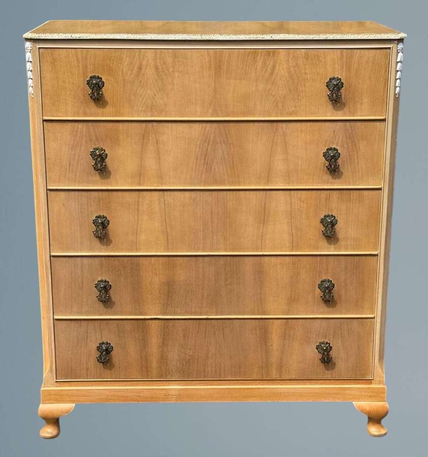 Limed Walnut Queen Anne Style Chest of Drawers