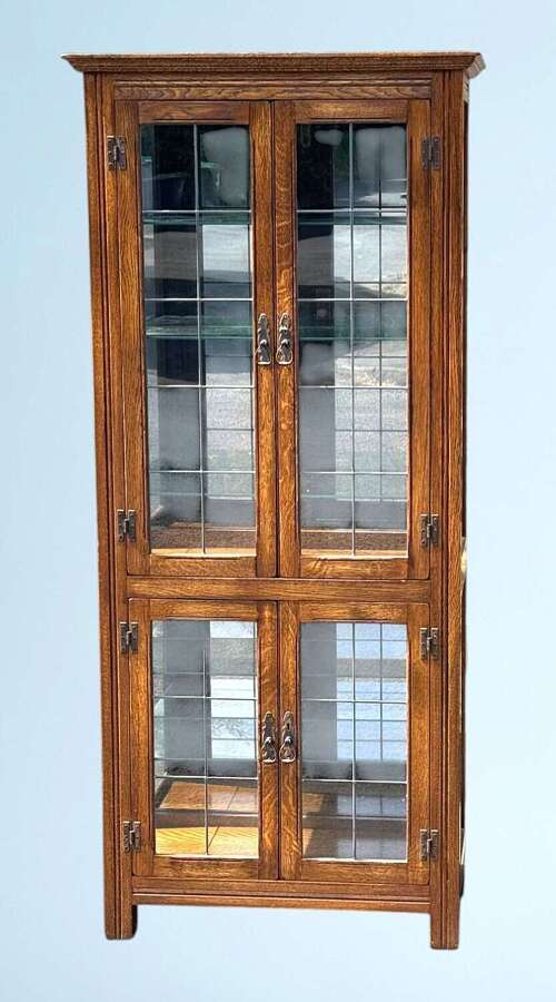 Oak Leaded Door Display Cabinet